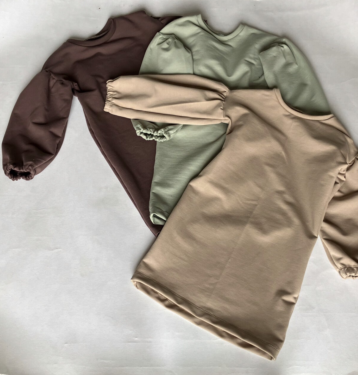 Door de pofmouwen geeft het de jurk een leuk effect. De jurk zit langs het lijf mooi aangesloten. De lengte valt tot net iets boven de knie. Bij de polsen zit een elastiek verwerkt zodat hij mooi aangesloten zit en het hierdoor ook onderaan de mouw dat leuke 'pof effect' geeft.